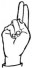На ћирилици написано МИА БАДРИЋ састоји се из 9 слова [?]. Исписано ћириличном једноручном азбуком за глувонеме: